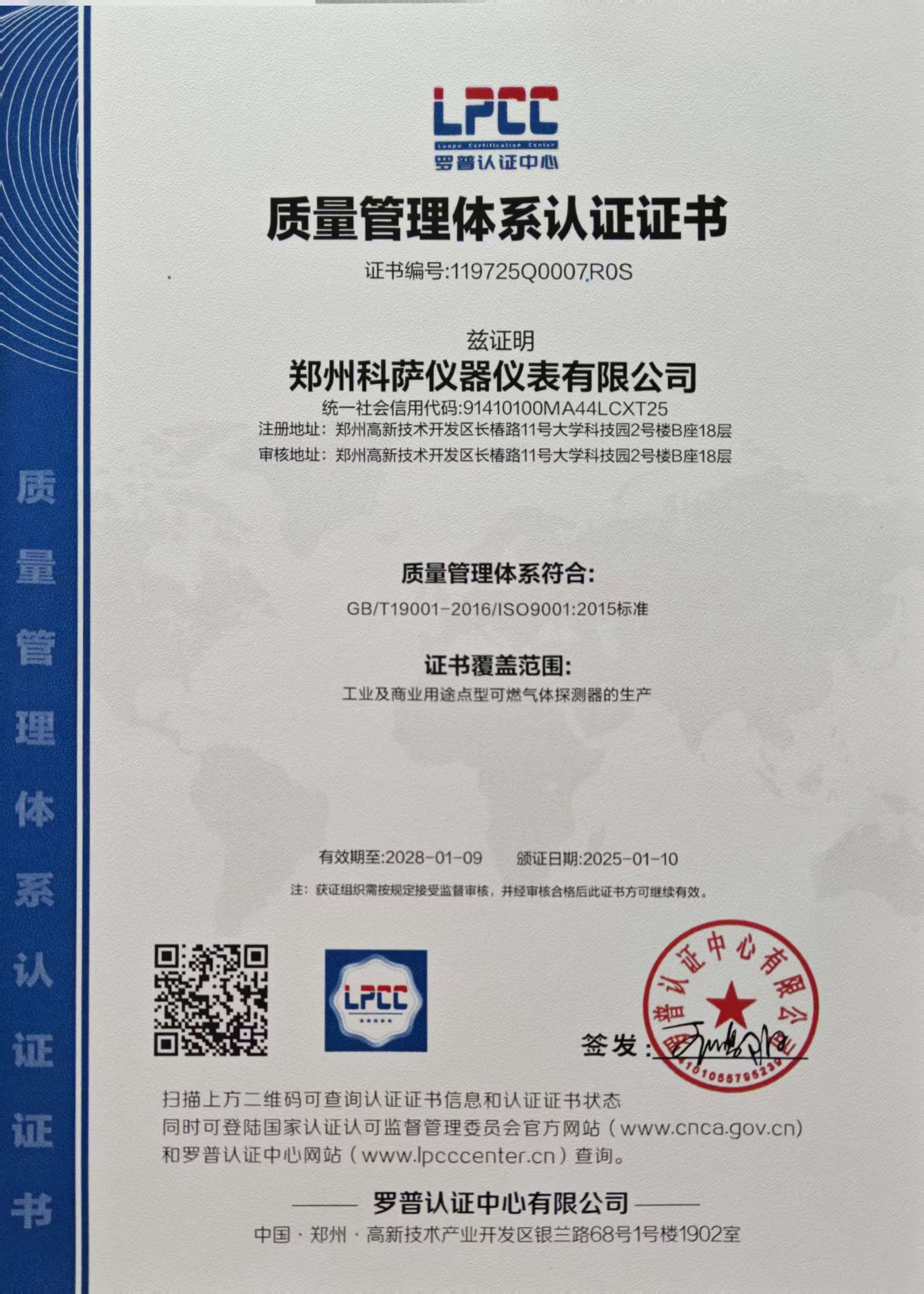 科薩公司是由上??扑_電子有限公司(研發(fā))、鄭州科薩電子有限公司和鄭州科薩儀器儀表 有限公司(制造工廠)組成的集科工貿(mào)于一體的高新技術企業(yè)”。公司成立于2002年,擁有一支 年輕、精干的研發(fā)隊伍和營銷、服務隊伍。公司自成立二十年以來專業(yè)致力于工業(yè)儀器儀表的研 發(fā)、生產(chǎn)、代理銷售?,F(xiàn)如今我公司業(yè)務銷售范圍已覆蓋全國各省市轄區(qū)。我公司自主研發(fā)的產(chǎn) 品主要有氣體探測器和氣體控制器兩大系列產(chǎn)品。氣體檢探測器產(chǎn)品包括便攜式氣體檢測檢測儀、點型氣體探測器、固定式氣體報警器等多種產(chǎn)品。氣體適用涵蓋可燃氣體、有毒氣體、氧氣 等幾大類。